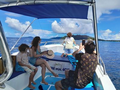 9-meter-long spacious boat with two powerful Suzuki engines and super comfortable padded seats that let you enjoy the sun and the delightful sea breeze.